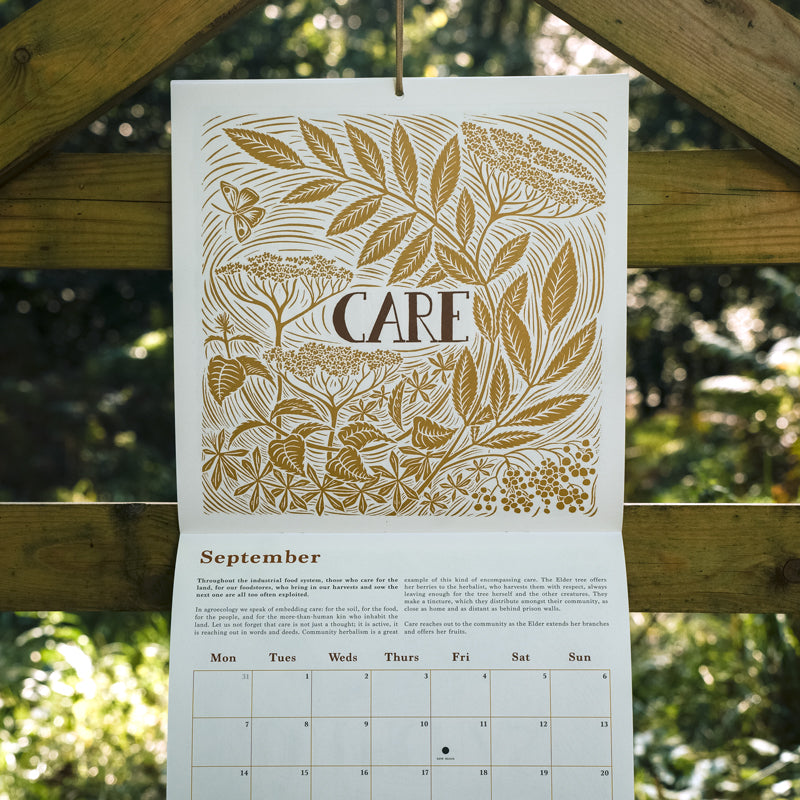An uplifting calendar with lino cut artwork by Emma Reith and proceeds to a good cause. Each of her moving images is intimately tied to one of twelve words, chosen to inspire hope and action on the land.